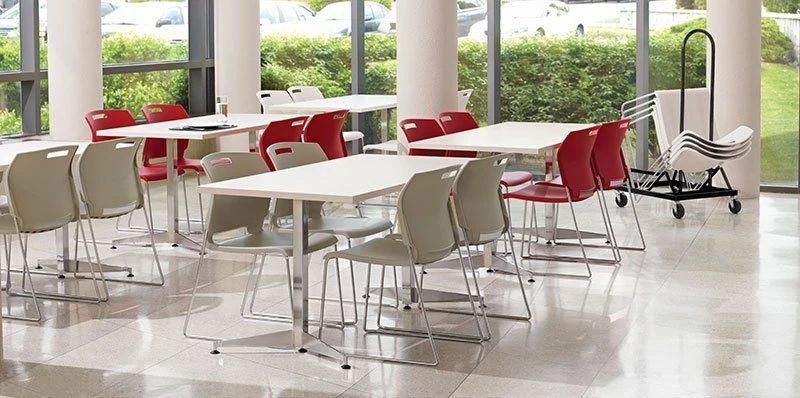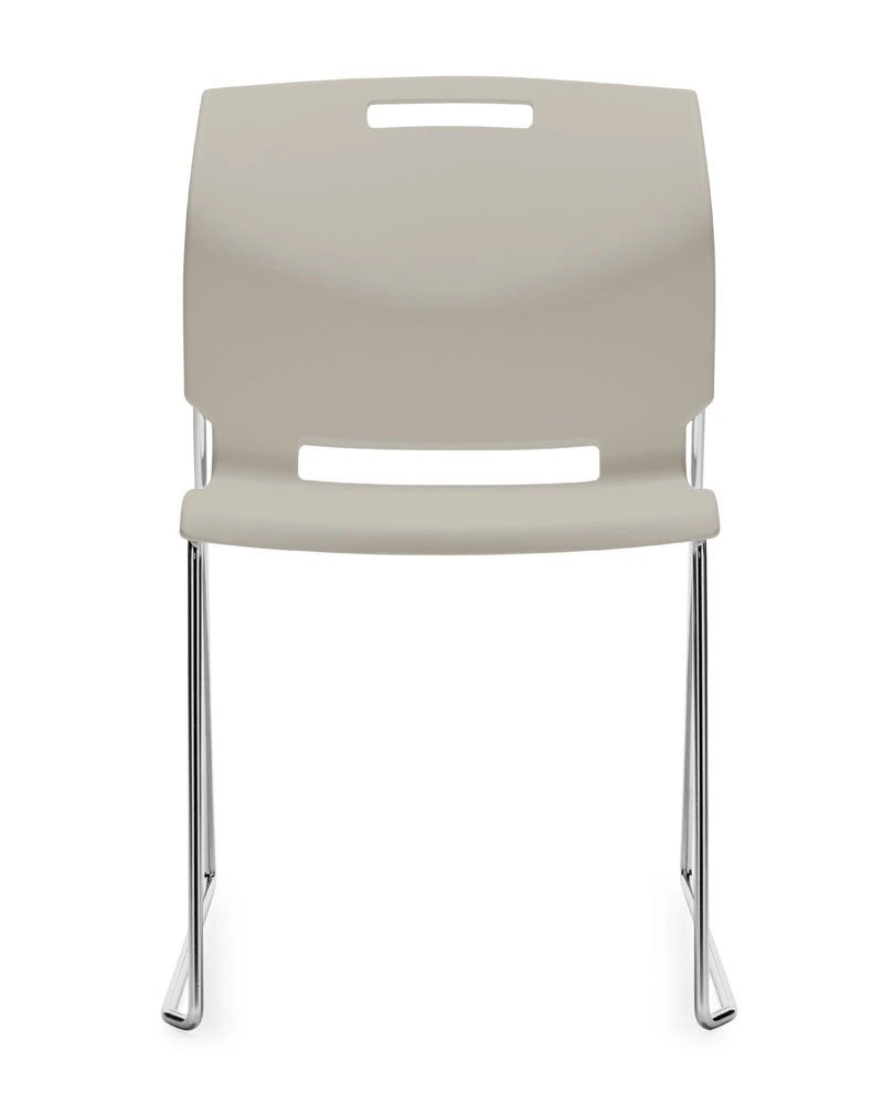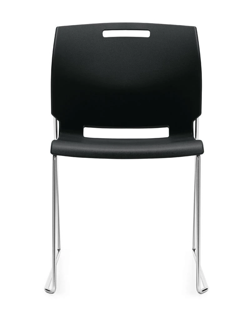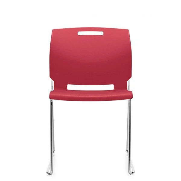 Popcorn stackable plastic chair by Global. Made with high quality polypropylene. Original and durable design for long term use. The one-piece polypropylene shell includes a cutout for easy cleaning and a handhold for ease of stacking.