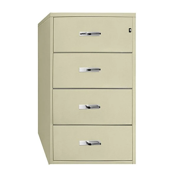 Fire-safe cabinet made by Gardex with 4 lateral file drawers. UL Certified fire-resistant filing cabinet. Gardex, the most secure and reassuring protection for your important documents through every kind of fire. Letter and legal format files.