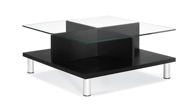 Coffee reception table shown with a black – BLK table case and a glass top.
