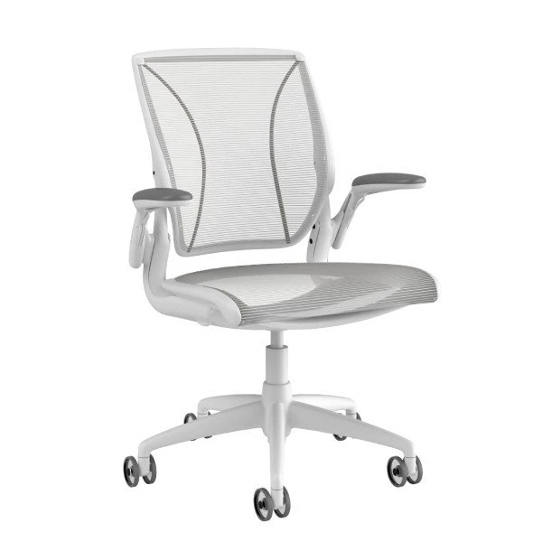 The Diffrient World ergonomic office chair by Humanscale has an ultimate, innovative design. No office mesh chair is more intuitive to use than this full-function task chair. It delivers the best user-friendly sitting experience, offering ease-of-use and effortless functionality. Its tri-panel meshes backrest provides custom back and lumbar support. The seat is also made of mesh, for a completely pleasant mesh chair. With its exceptional beauty and its rare comfort, this high-quality, affordable task chair is perfectly suitable for the modern office.