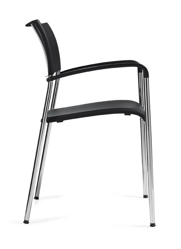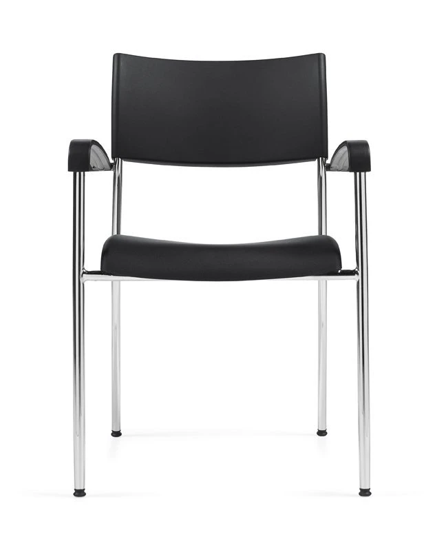Lightweight and durable stacking chair. Durable, high impact polypropylene seat and back. Oval tube steel frame, chrome finish.