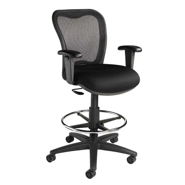 Swivel drafting office stool with a medium mesh back and adjustable arms. LXO is light weight and well proportioned to deliver an astonishing performance and superior comfort.