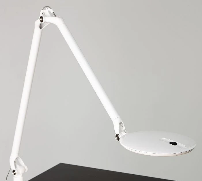 The Element Disc task light by Humanscale is chic and futurist in its looks. The latest technology using innovative thin film LED produces an ultra-wide footprint of glare-free light. This lamp is also equipped with a PIR occupancy sensor to automatically turn the unit off when it is not used, and back on when the user returns. Its dimmer switch provides 7 adjustable illumination levels for energy efficiency and ergonomic function. The light’s smart dimming memory saves the last selected lighting level, even after the light has been shut off. The base is complete with power and USB connection. It’s a must-have for distinctive design workspaces. Without any shadow, the projected light is more even and the user should not see the shadow of his hand writing. Its ergonomic aspect allows a large variety of positions. When it is not in use, it folds into compact nesting position, with the form of the lamp head gracefully echoing that of the base.