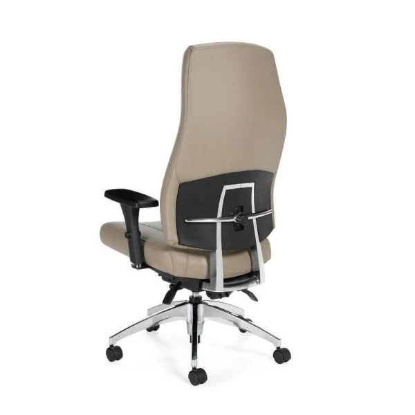 Global Triumph ergonomic high back chair. Elegant office chair designed by Zooey Chu featuring a comfortable and thick padded seat with high back combined to an adjustable lumbar support and arms. Comes standard with a polished aluminum back trims and base.