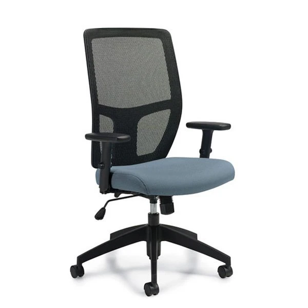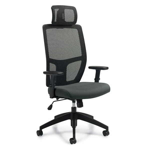 Format is an ergonomic chair with synchro-tilt and mesh backrest. A unique mesh headrest is an interesting option. The upholstered seat is very comfortable. Adjustable backrest in soft black mesh lets air circulate.