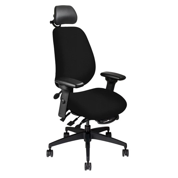GeoCentric Geo XTB chair. High-quality ergonomic chair by Ergocentric providing a very comfortable and configurable computer work chair. Nicely padded for superior ergonomics. The backrest has a dual-curved shape and is height adjustable. This chair is offering all the ergonomic adjustments to prevent injuries and optimize your posture when doing intense computer work.