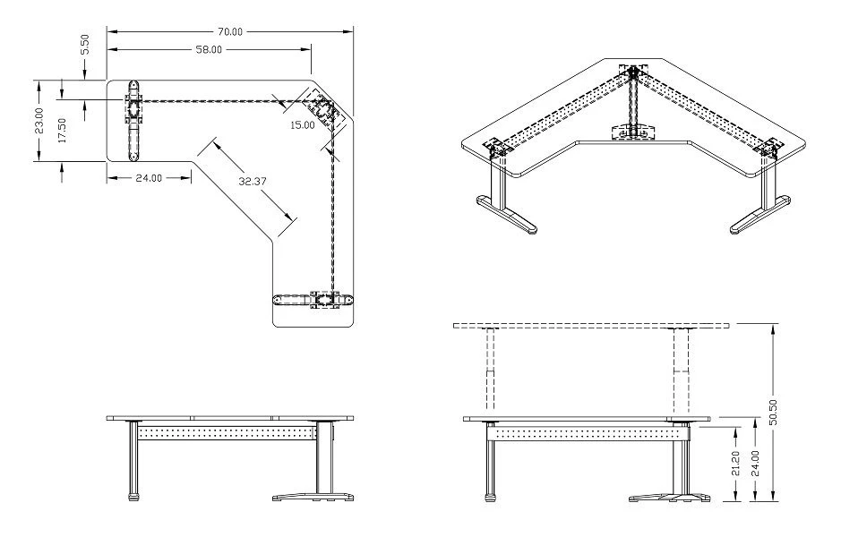 – Single computer corner worksurface 23″ x 70″ / 70″ x 23″