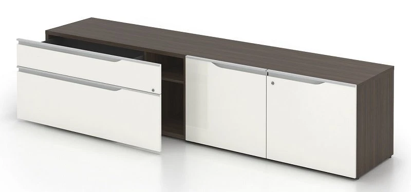 – Low storage units 20” x 78” (drawers+door): 1 box drawer, 1file drawer & 1 shelf hidden by doors – 21″ H