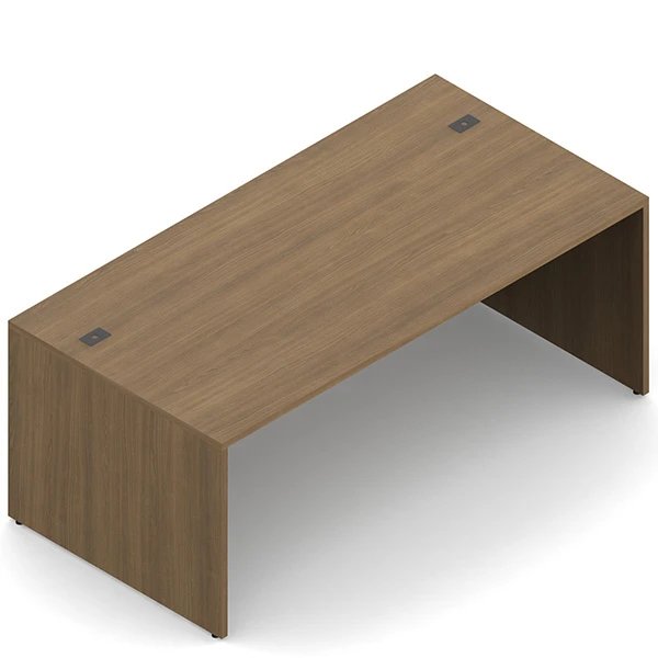 The Newland Ionic NL7236D shell desk by Global is a clean, modern piece of furniture able to support a wide range of workspace applications from private offices to cubicles. This desk offers a high-quality laminate surface top and 2 mm PVC printed matching edge banding. It is also equipped with a full modesty panel and end gables.