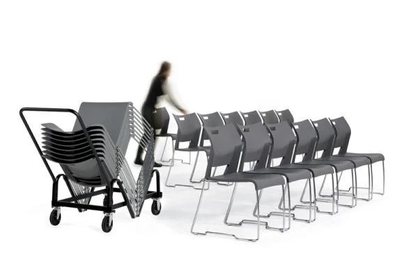 Allows Duet stacking chairs to stack up to 40 high for ease of transportation and storage. Comes in black only.