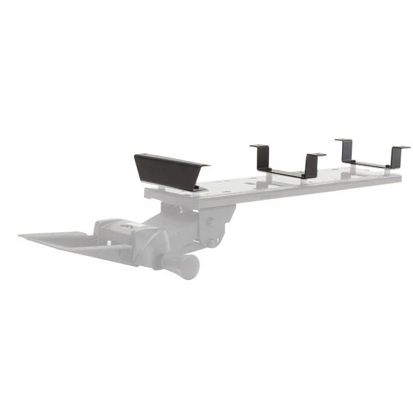 Bench mount kit by Workrite is designed for mounting keyboard tray to a height adjustable desk where support beams limit the availability of flat surfaces. Attaches between the table surface and the rail of the keyboard drawer. Once you have selected a keyboard support simply measure the clearance required to drop the track below the beam.