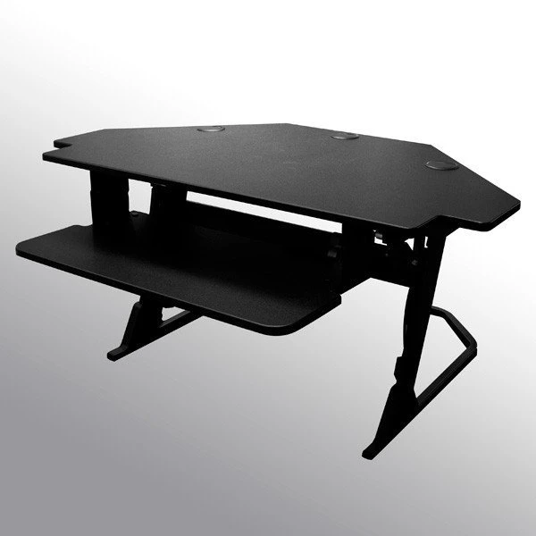 Solace by Workrite Corner sit stand desk converter. Designed to fit any corner desk to convert your existing desk into a sit stand workstation. The large 42″ worksurface includes three grommets for cable management and easily accommodates two 27″ monitors. It provides a wide 13.8″ lifting range through a smooth and quiet gas-assisted system.
